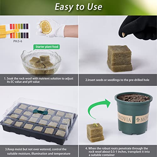 Future Way 1.5″ Rockwool Cubes with Holes, Starter Plugs for Hydroponics, Easy to Transplant and Cut by Scissors, 4 Sheets of 49 Plugs, 196 Plugs Total