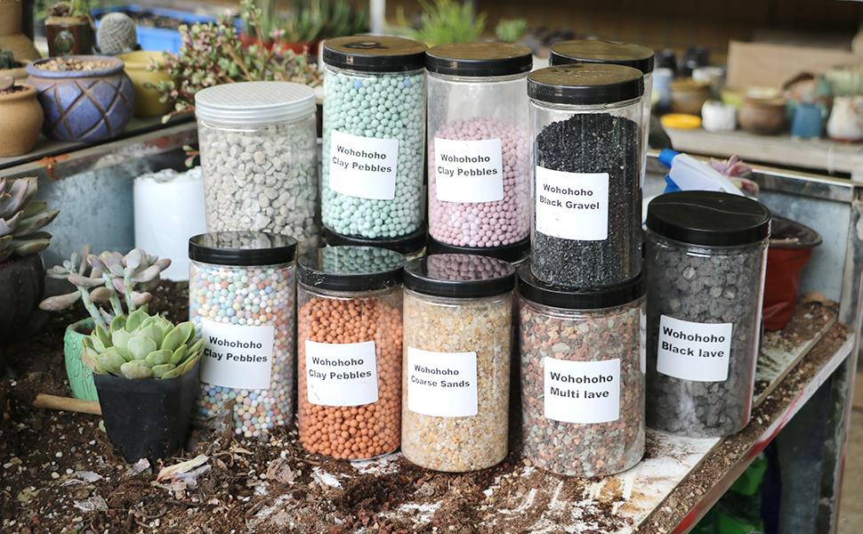 Decoration Rocks: These clay pebbles look great, perfect color and texture, much better than just seeing a bunch of dirt/soil in the pots. No fading, no peeling. We are also offering black sand / gold sand / lava rocks / polished rocks in Amazon.