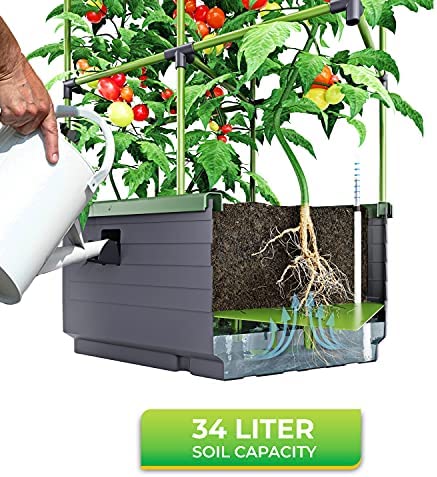 Grow your own tomatoes, peppers, vines or gorgeous flowers with this unique self watering planter with trellis!