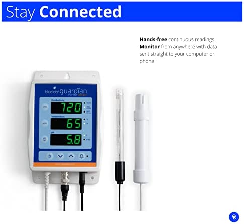Bluelab MONGUACON Guardian Monitor Connect for pH, Temperature, and TDS in Water with Data Logging (Connect Stick not Included), Nutrient Meter for Hydroponic System and Indoor Plant Grow White