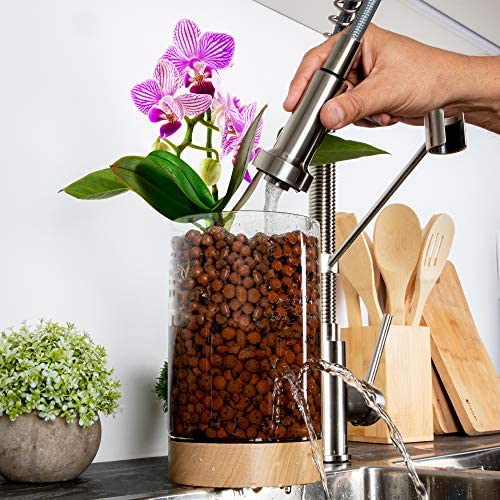Pot & Pebble Glass Indoor Planter with Wooden Base & Water Level Control: Transparent for Root Visibility (Suitable for Semi-Hydroponic or General Use) Easier Plant Care, Less Watering & More Growth!