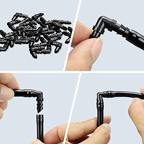 【Easy Installation】Directly insert this irrigation elbow at the ends of the water pipe, there is no need of any glue or tools, making garden work more convenient and much easier. Tips: Heat the end of hose to help it slide on this elbow.