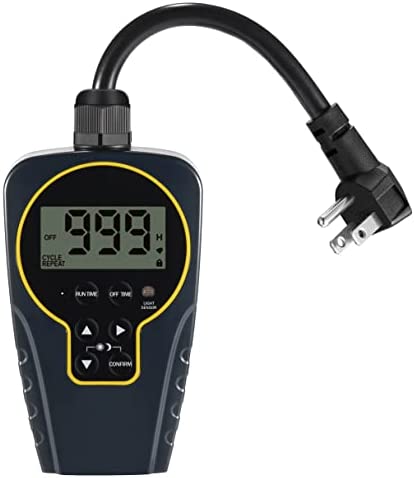 Techbee 1 s to 999 h Short/Long On-Off Interval Repeat Cycle Timer Plug Outlet with Countdown and Light Sensor, Waterproof for Outdoor (15A 3/4HP)